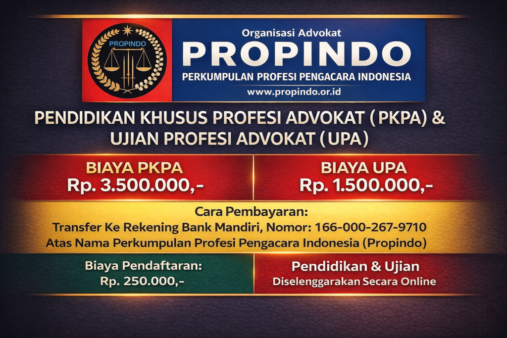 Pendidikan Khusus Profesi Advokat dan Ujian Profesi Advokat yang diselenggarakan secara resmi oleh PROPINDO sebagai bagian dari komitmen peningkatan kualitas profesi advokat di Indonesia.